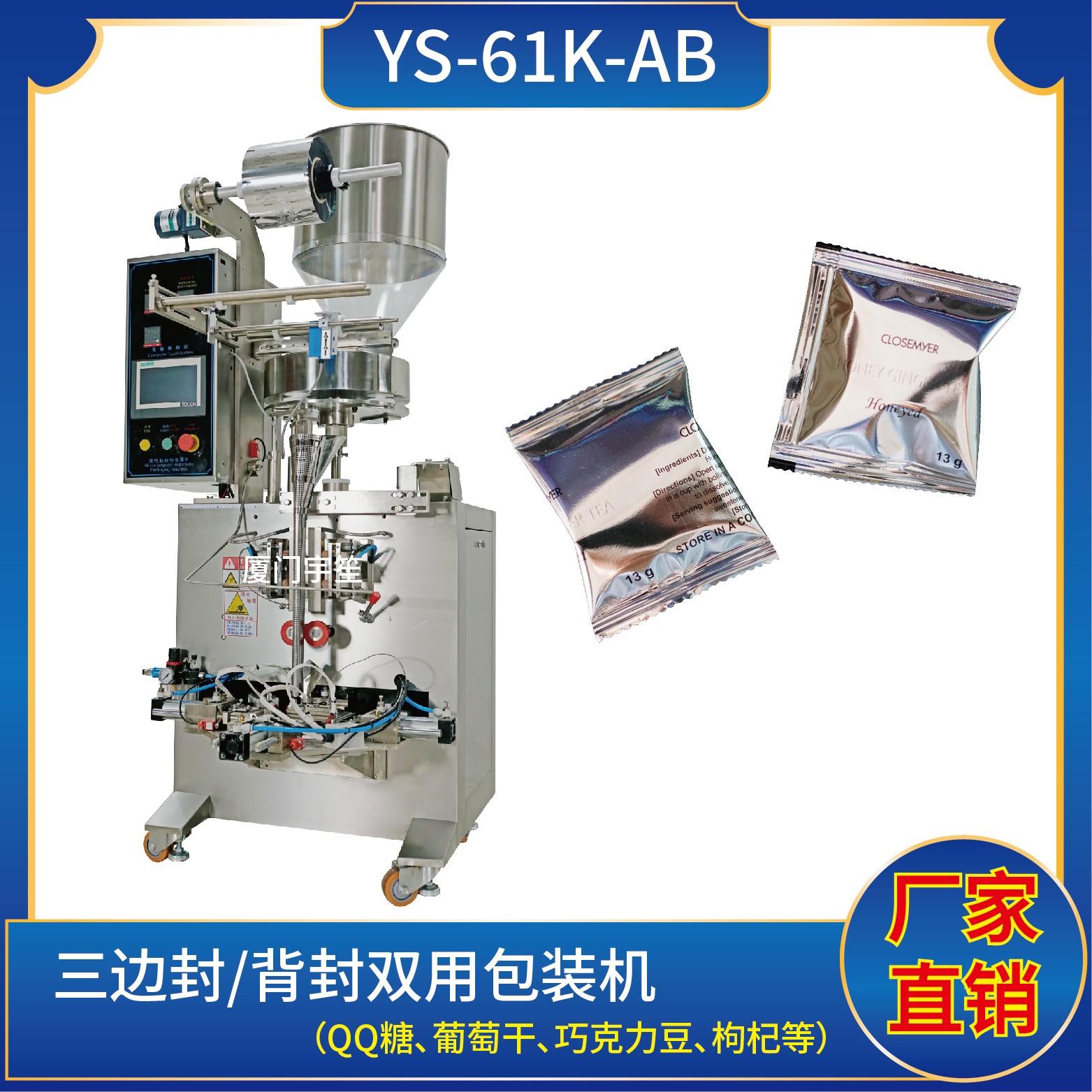 YS-61K-AB 三邊封/背封雙用包裝機特點1、適用于食品、醫(yī)藥、化工、化妝品行業(yè)中顆粒物品的計量包裝。2、可自動完成制袋、計量、下料、封合、分切、計數(shù)、且可根據(jù)客戶要求配置打印批號等功能。3、觸摸屏操作,PLC 控制,驅動步進電機控制袋長,性能穩(wěn)定、調整方便、檢測準確。智能式溫控儀,PID調節(jié),保證將溫度的誤差范圍…