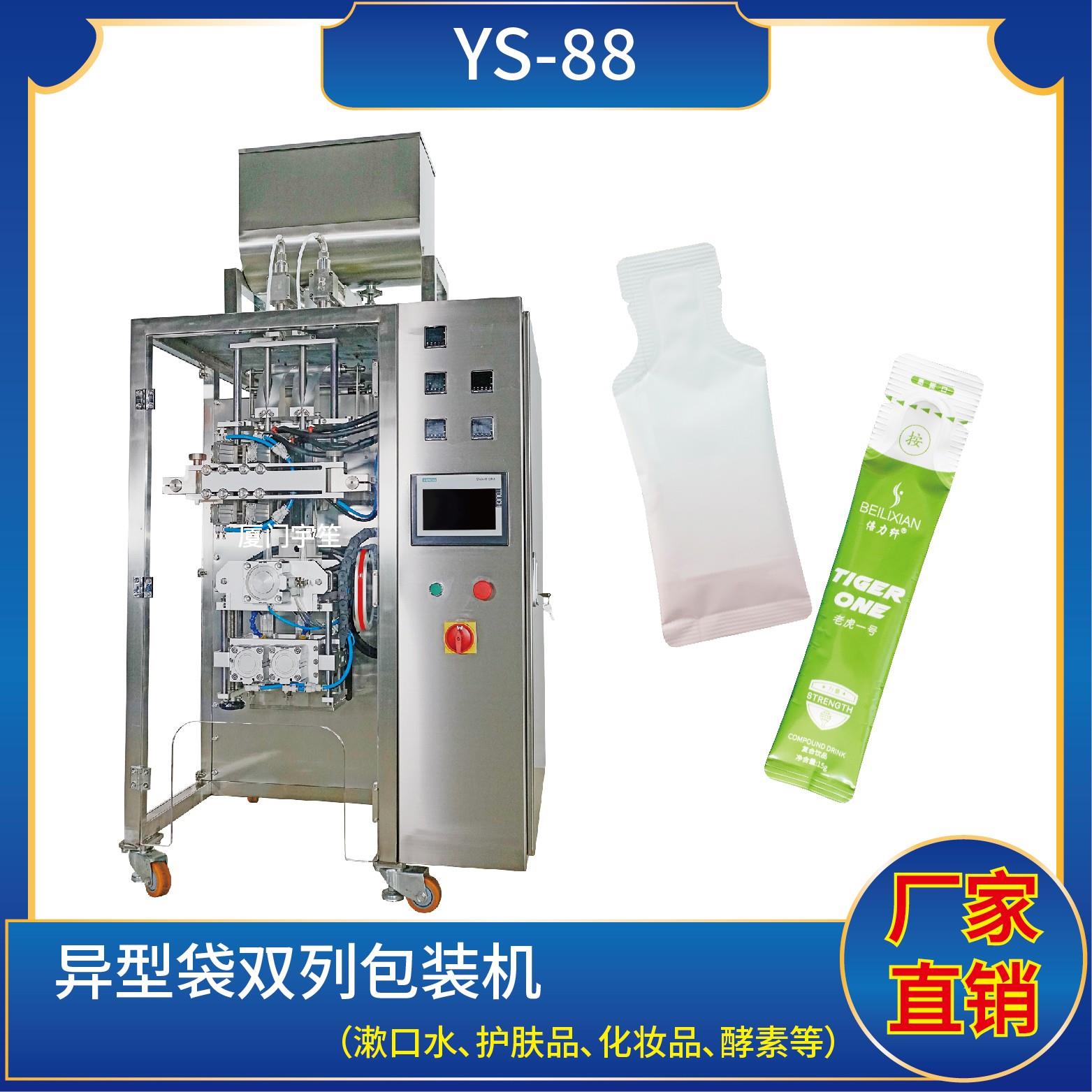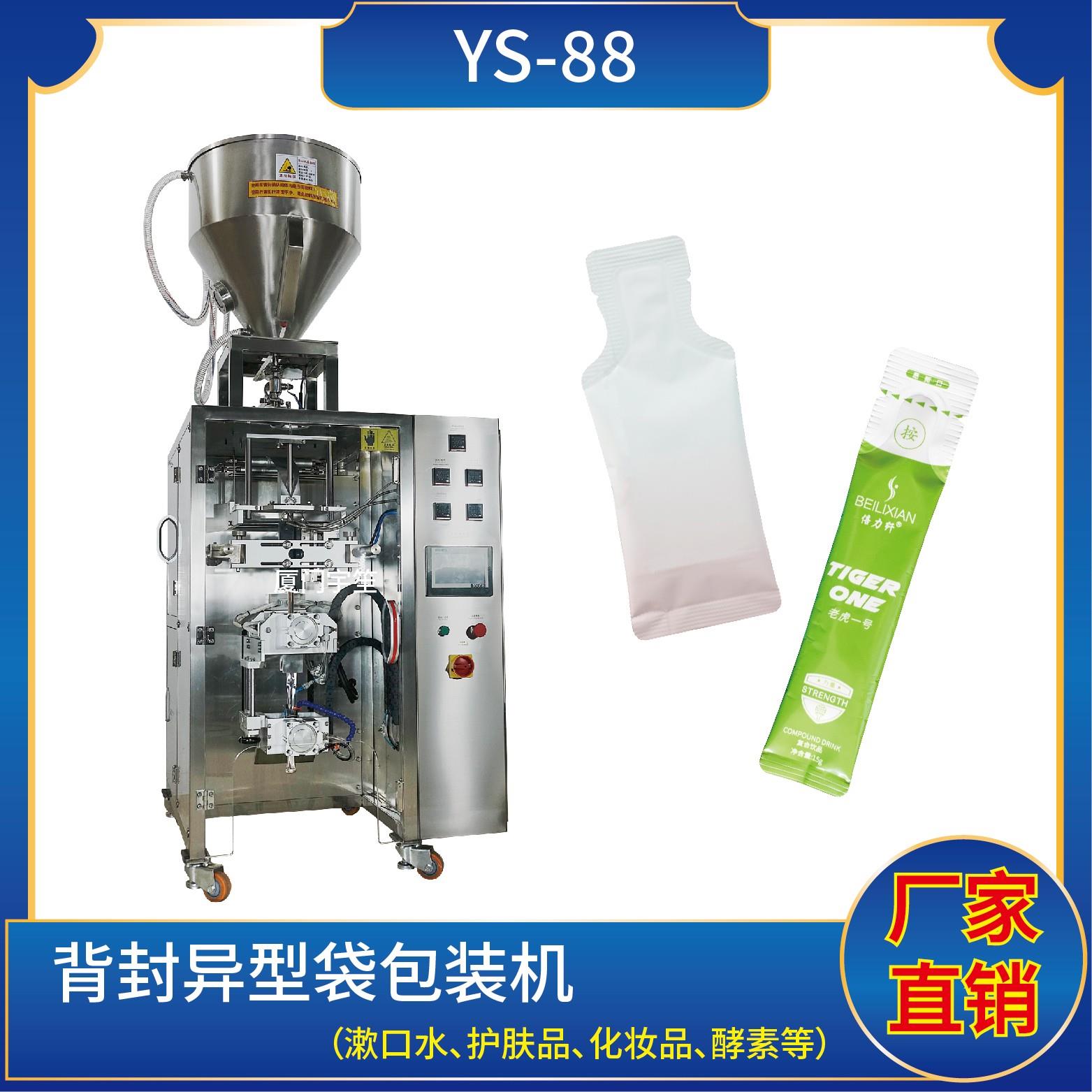 YS-88B 異形袋包裝機特 點 1、適用于食品、醫(yī)藥、化工、化妝品行業(yè)中液體、醬料等物品的異形袋計量包裝。2、可自動完成制袋、計量、下料、封合、分切、計數、且可根據客戶要求配置打印批號等功能。3、觸摸屏操作,PLC 控制,伺服電機控制袋長,性能穩(wěn)定、調整方便、檢測準確。智能式溫控儀,PID調節(jié),保證將溫度的誤差范…