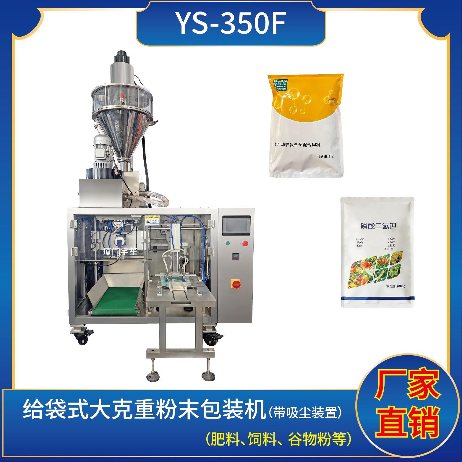 YS-SP350F 給袋式粉末包裝機特 點 Characteristic1、適用于食品、醫(yī)藥、化工、化妝品行業(yè)中粉劑等大克重物品的計量包裝,如:面粉、玉米粉、農(nóng)藥粉等。2、包裝流程全自動,無需人工操作??筛鶕?jù)充填物料的性質(zhì)選配不同的下料結(jié)構(gòu)。3、采用觸摸屏操作,PLC控制,封口溫度自動補償,控溫精準,封口美觀大方。4、包裝材料:PE…