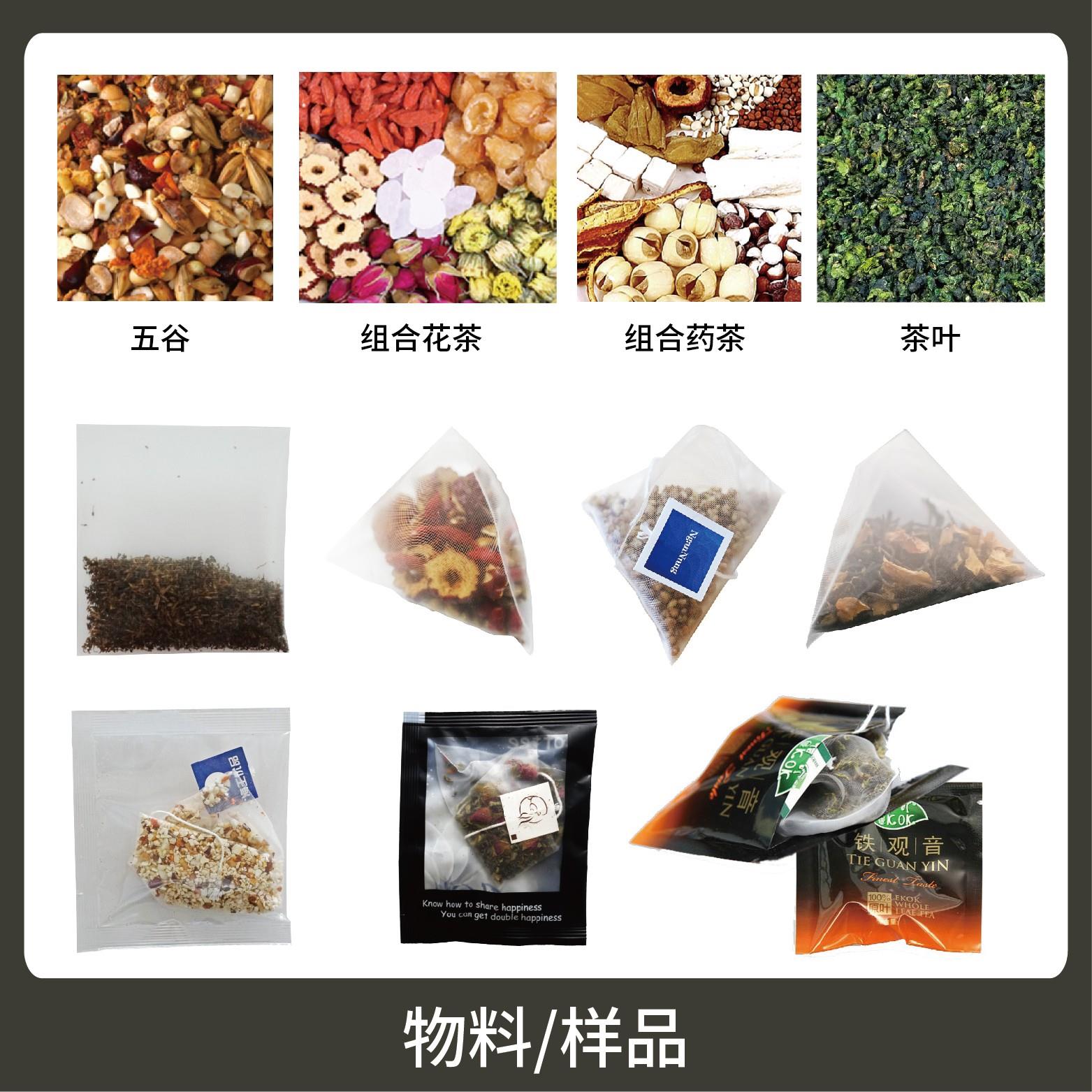 適用于綠茶、紅茶、花茶、咖啡、中國茶、健康茶、中藥茶、顆粒等內(nèi)外袋一次性包裝機。