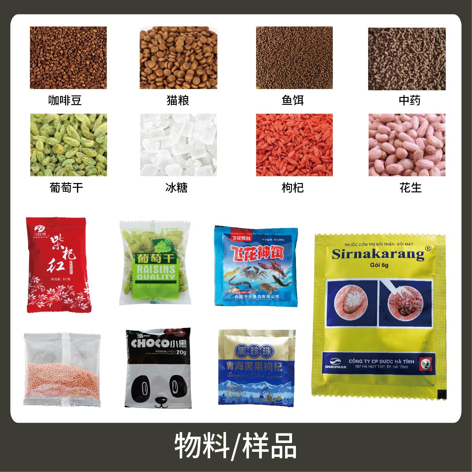 1、適用于食品、醫(yī)藥、化工、化妝品行業(yè)中顆粒物品的計量包裝,如:種子、中藥顆粒、調(diào)味料。