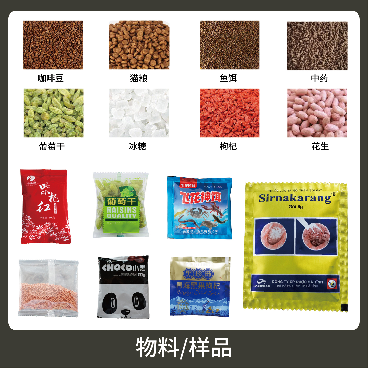 適用于食品、醫(yī)藥、化工、化妝品行業(yè)中顆粒物品的計量包裝,如:種子、中藥顆粒、調(diào)味料。